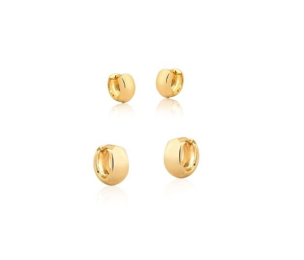 DUPLA DE ARGOLAS LISAS ARREDONDADAS BANHADA A OURO
