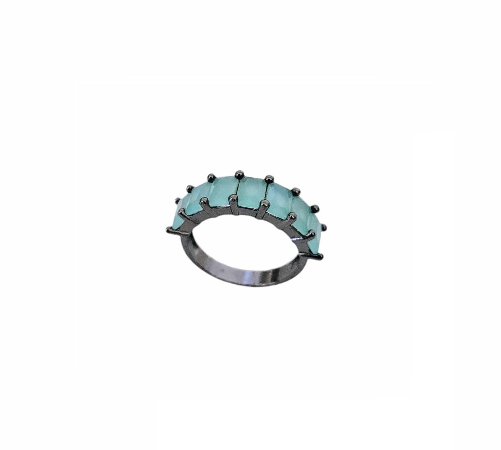 MEIA ALIANÇA COM CRAVAÇÃO RETANGULAR ACQUA BANHADO A RÓDIO NEGRO