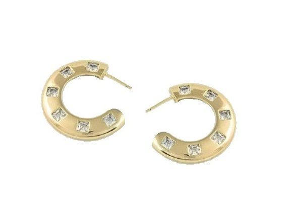 MEIA ARGOLA COM CRAVAÇÃO QUADRADA LATERAL BANHADA A OURO
