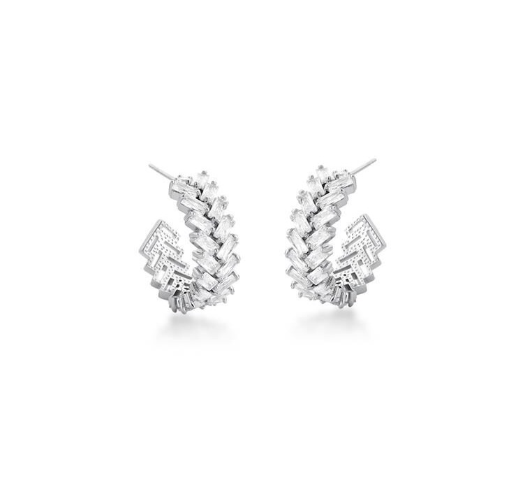 MEIA ARGOLA COM CRAVAÇÃO RETANGULAR CRISTAL BANHADA A RÓDIO BRANCO