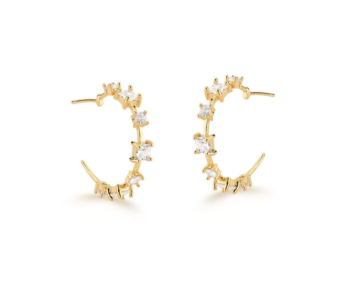 MEIA ARGOLA COM CRISTAIS GEOMÉTRICOS BANHADO A OURO