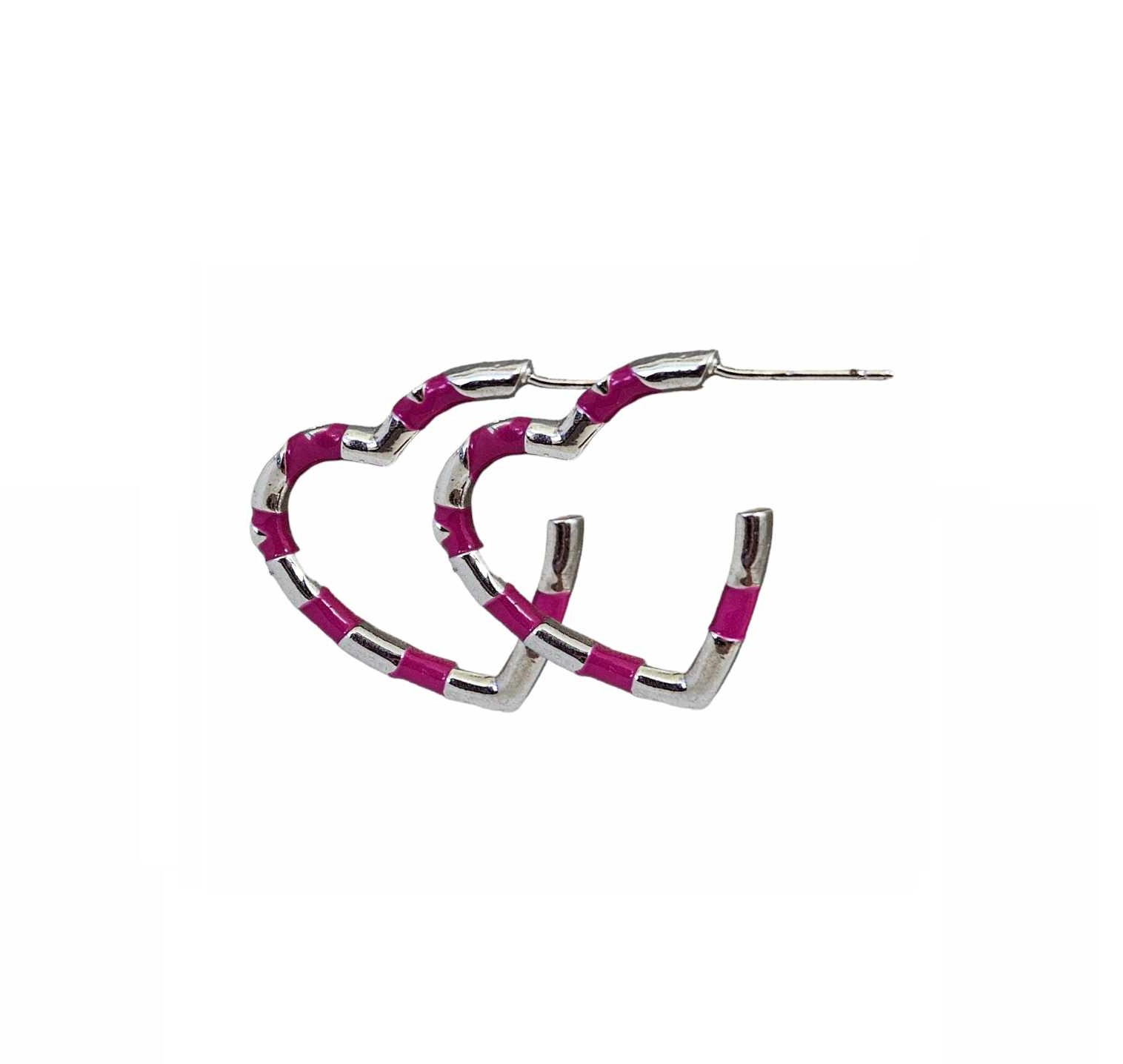 MEIA ARGOLA CORAÇÃO ROSA COM PONTOS DE LUZ BANHADO A RÓDIO BRANCO