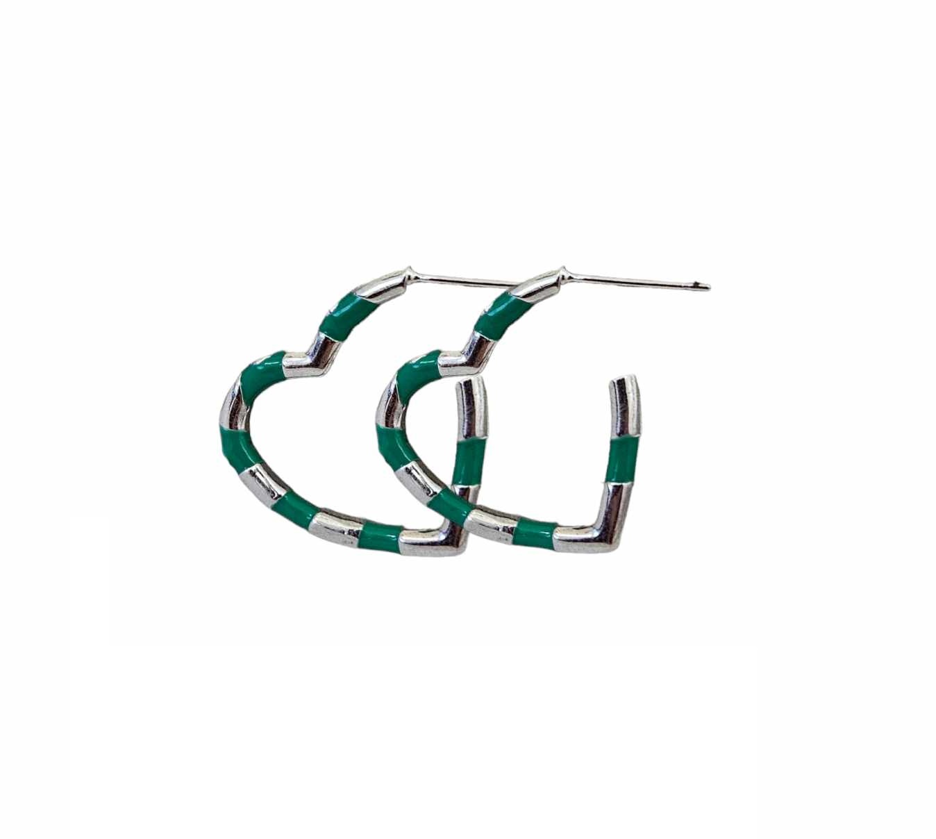 MEIA ARGOLA CORAÇÃO VERDE COM PONTOS DE LUZ BANHADO A RÓDIO BRANCO