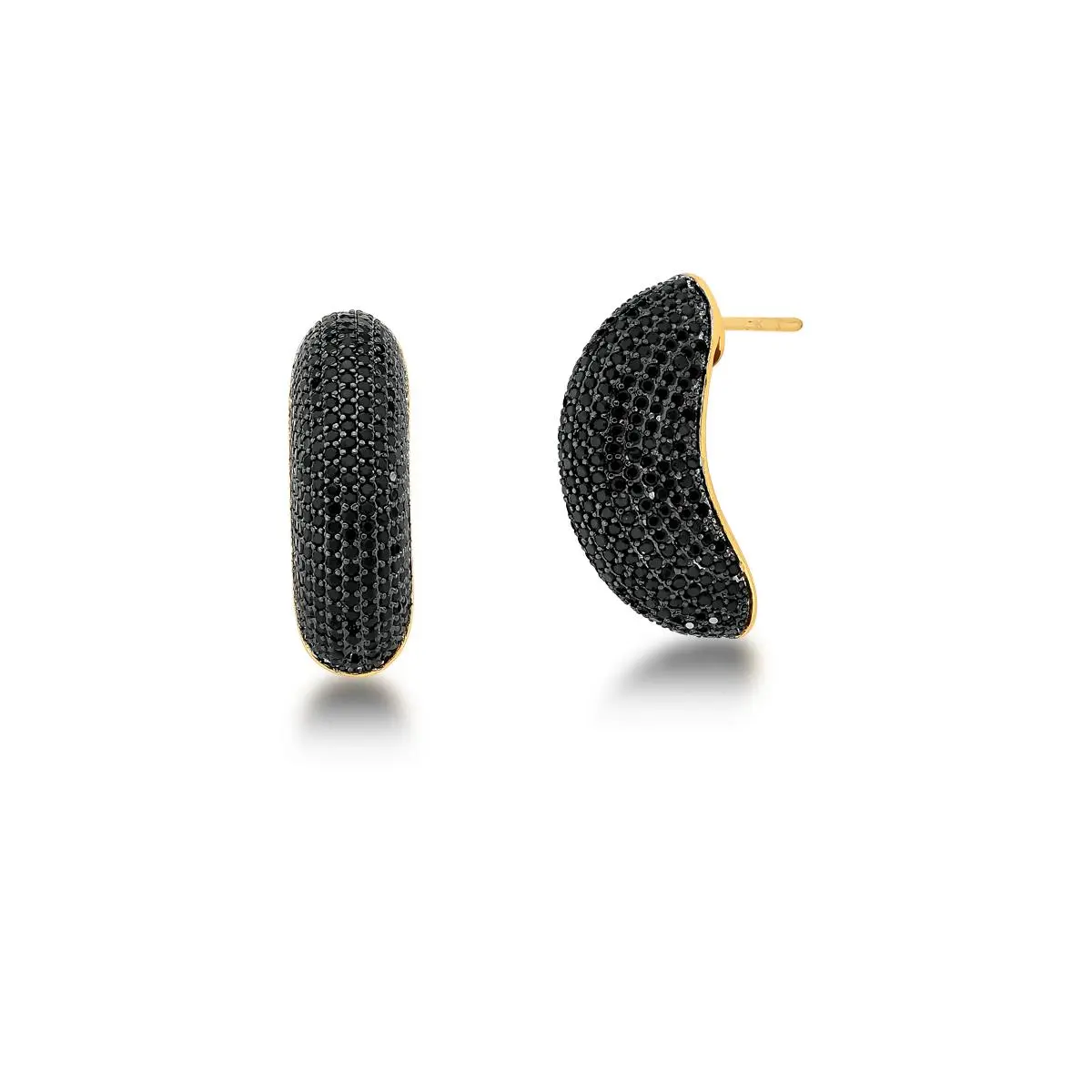 MEIA ARGOLA CRAVAÇÃO NEGRA BANHADA A OURO