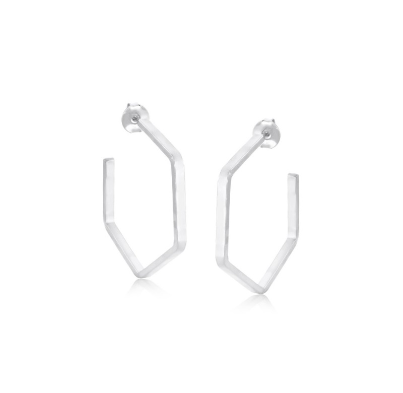 MEIA ARGOLA LISA TRABALHADA GEOMÉTRICA BANHADA A RÓDIO BRANCO