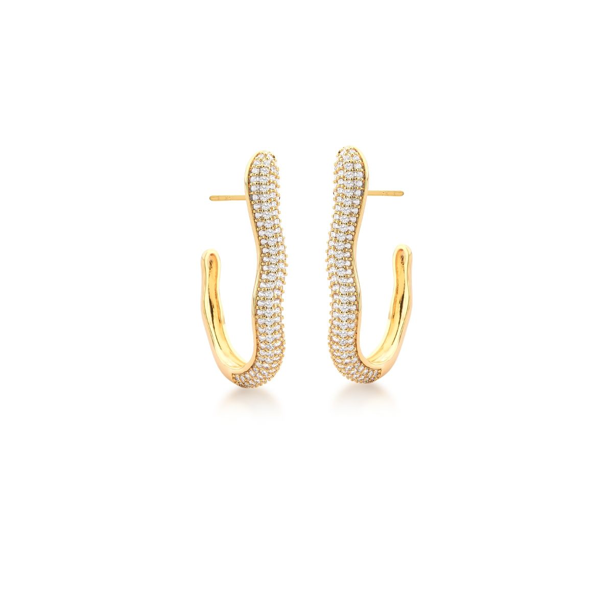 MEIA ARGOLA ORGÂNICA COM CRAVAÇÃO FRONTAL BANHADA A OURO