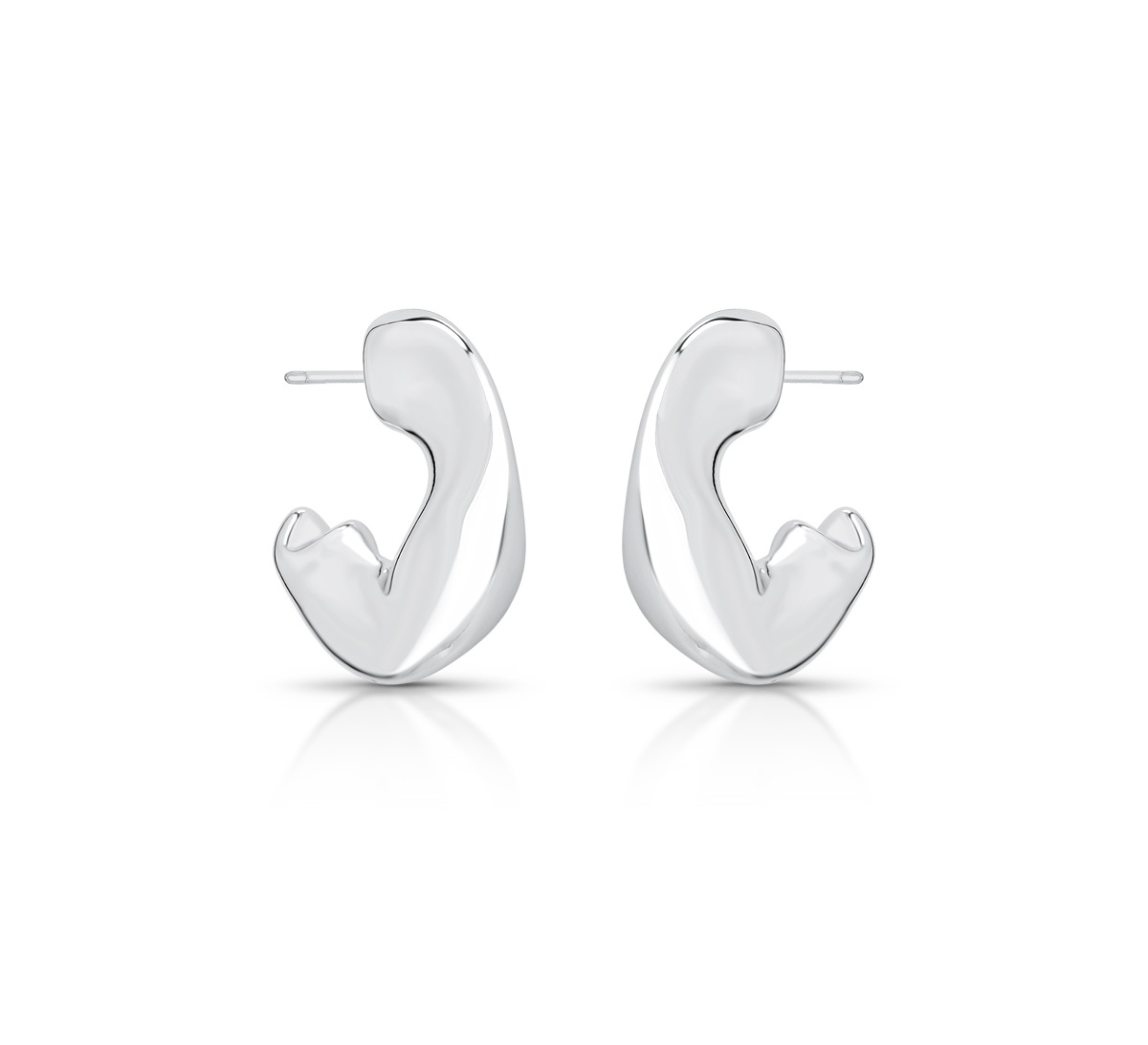 MEIA ARGOLA ORGÂNICA LISA BANHADA A RÓDIO BRANCO