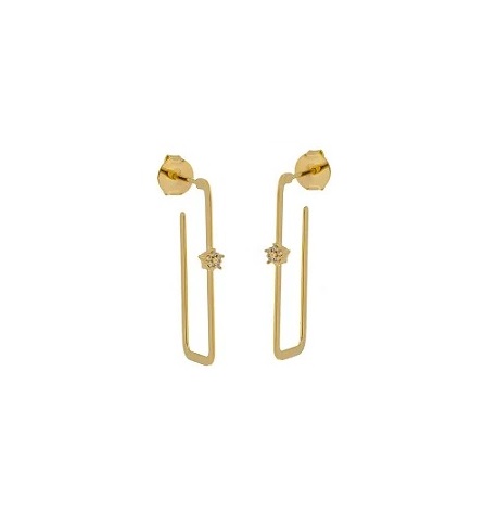 MEIA ARGOLA RETANGULAR COM DETALHES EM ZIRCÔNIAS BANHADO A OURO