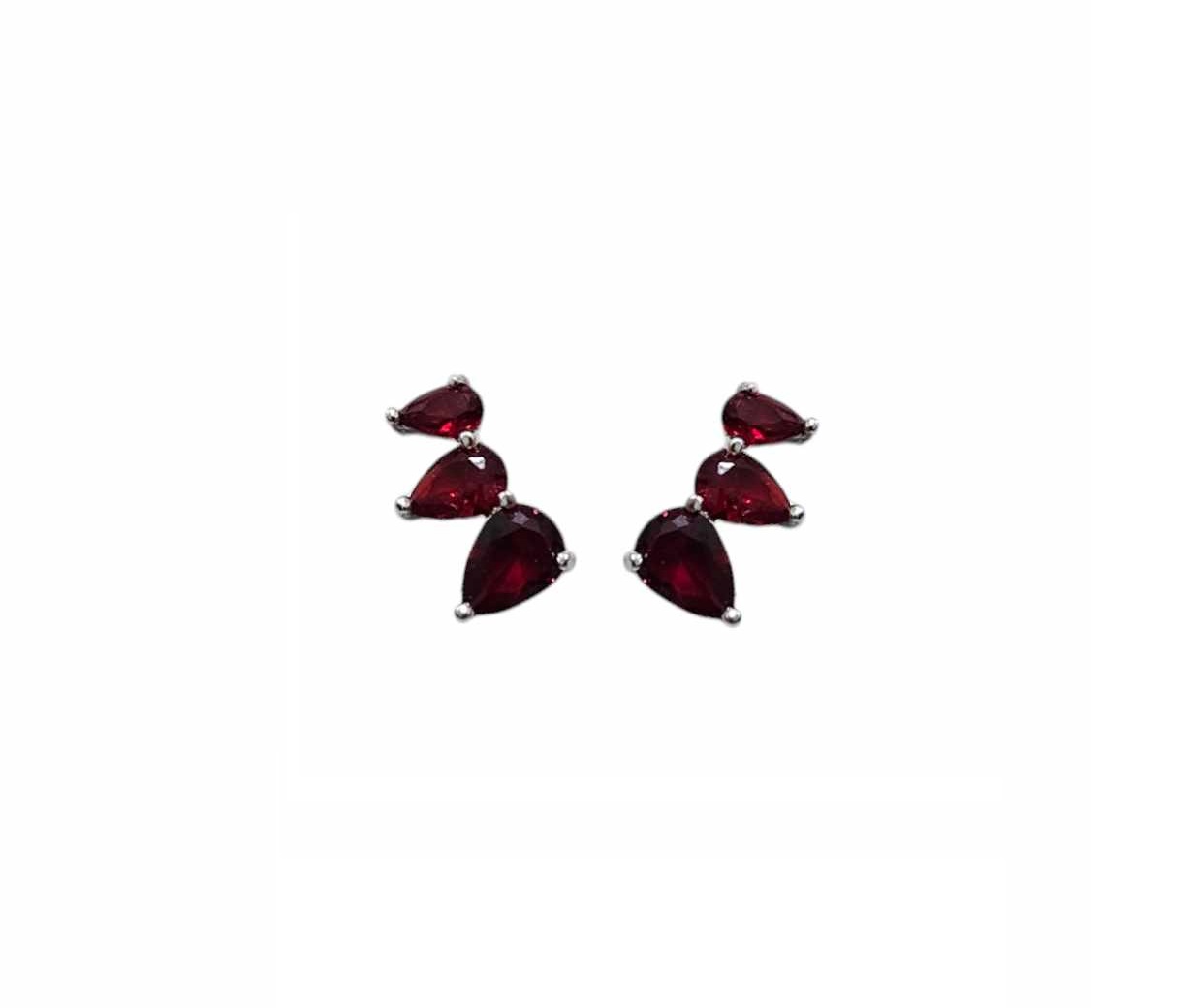 MINI EARCUFF TRÊS GOTAS RUBI BANHADO A RÓDIO BRANCO