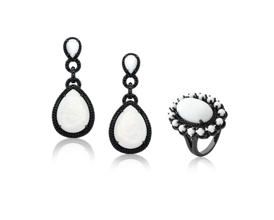 MIX DE BRINCOS E ANEL P&B BANHADO A RÓDIO NEGRO