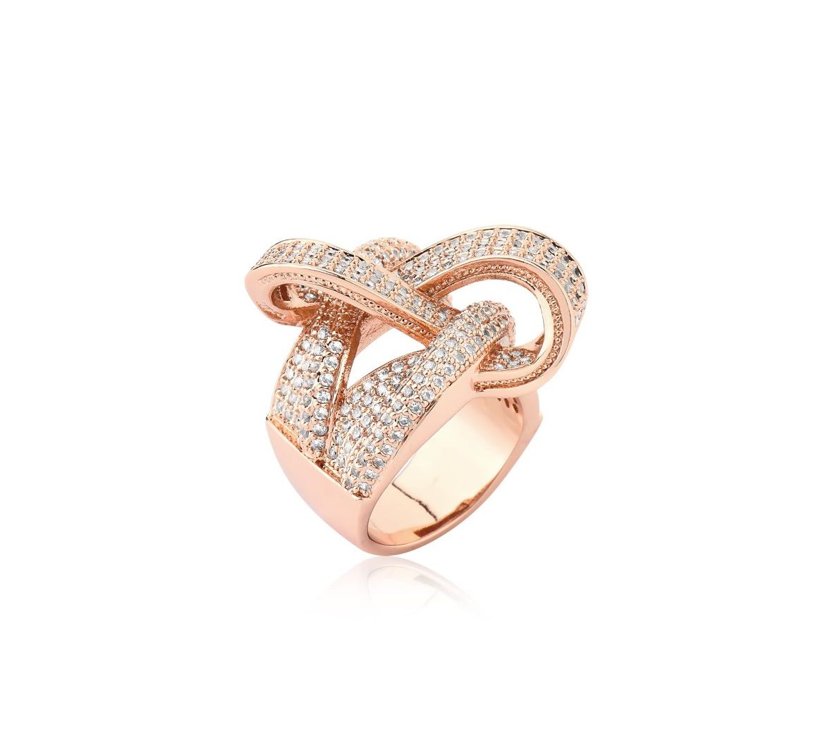 ANEL LUXO LAÇO CRAVEJADO BANHADO A OURO ROSÊ
