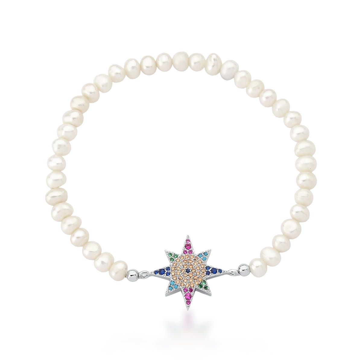 PULSEIRA EM PÉROLAS DE ÁGUA DOCE E ESTRELA CRAVEJADA BANHADA A RÓDIO
