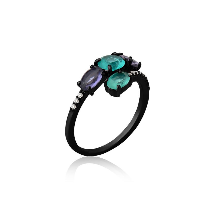 ANEL QUATRO PEDRAS COLORS BANHADO A RÓDIO NEGRO