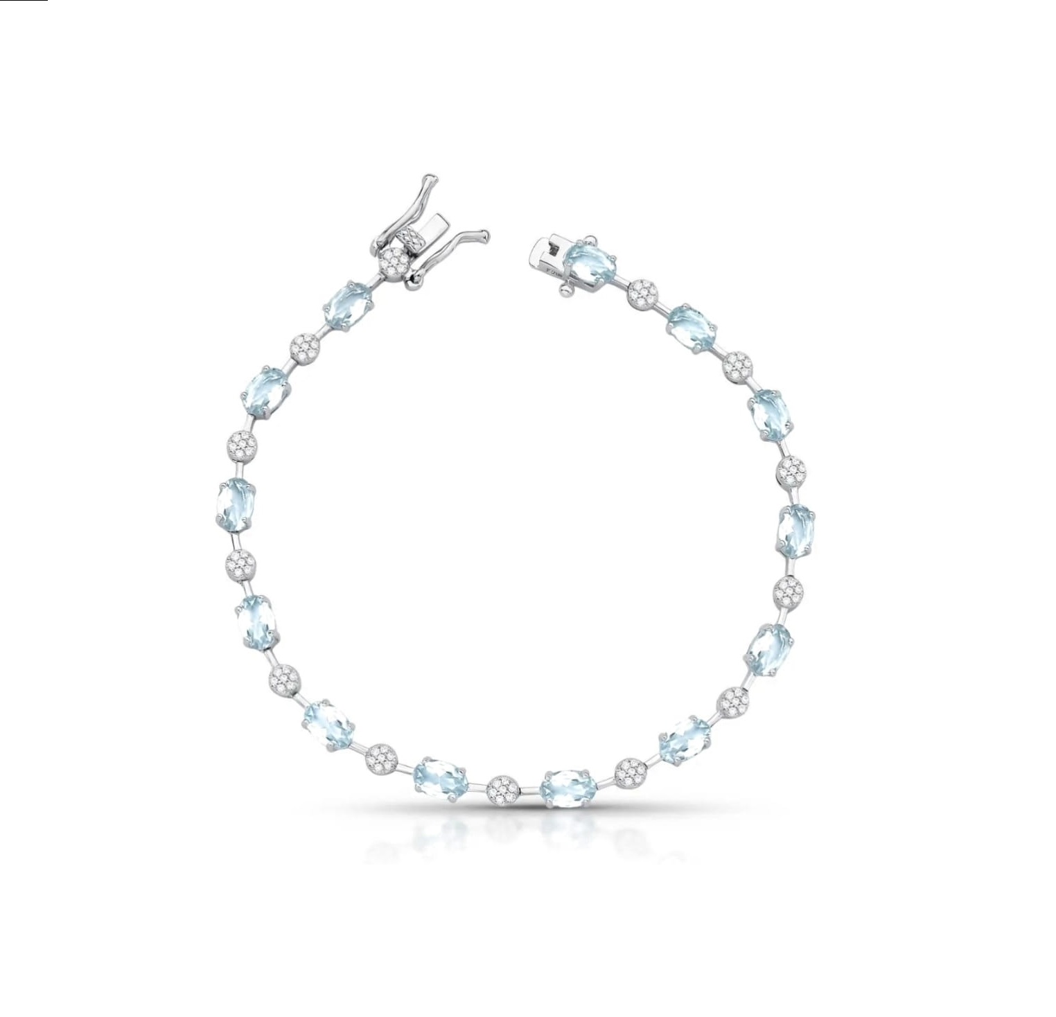 PULSEIRA COM CRISTAIS OVAIS AZUIS E ZIRCÔNIAS BANHADA A RÓDIO BRANCO