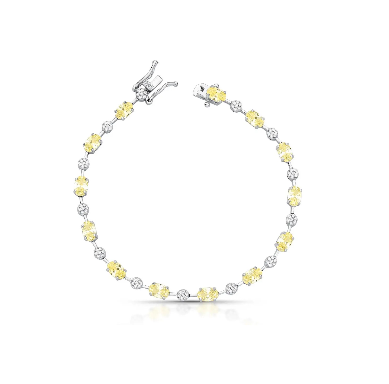 PULSEIRA COM CRISTAIS OVAIS AMARELOS BANHADA A RÓDIO BRANCO