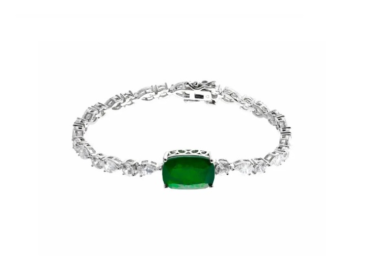Pulseira de Luxo com Zircônia Esmeralda Fusion Banhada a Ródio Branco
