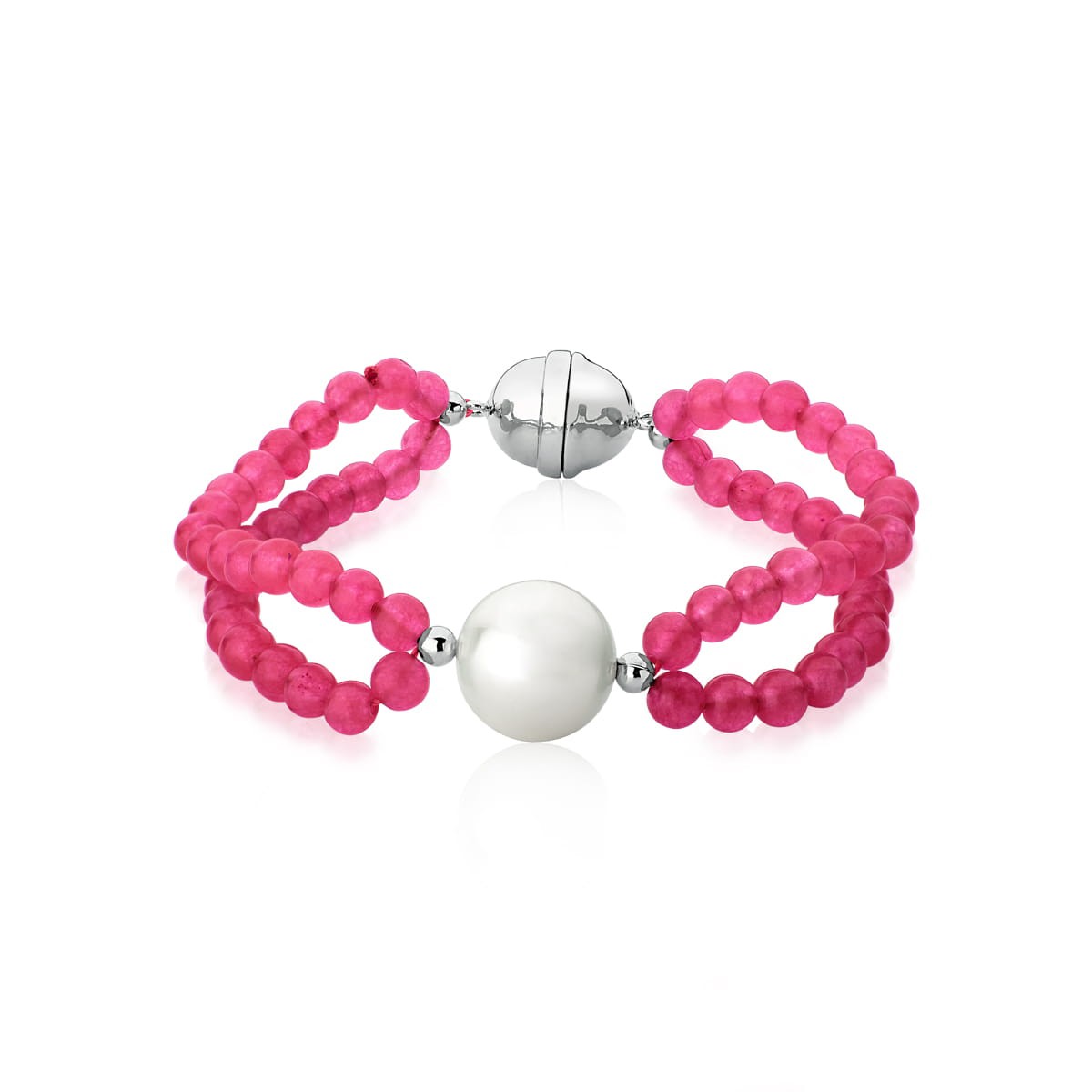 PULSEIRA DUAS VOLTAS COM CRISTAIS ROSA BANHADO A RÓDIO