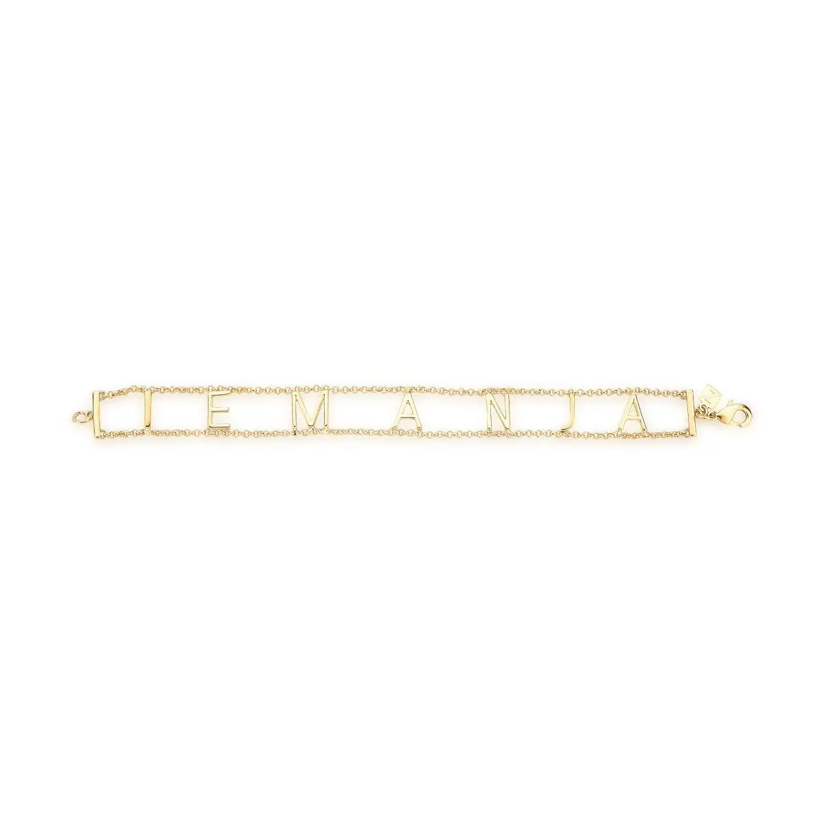 PULSEIRA ESCRITA IEMANJA BANHADO A OURO