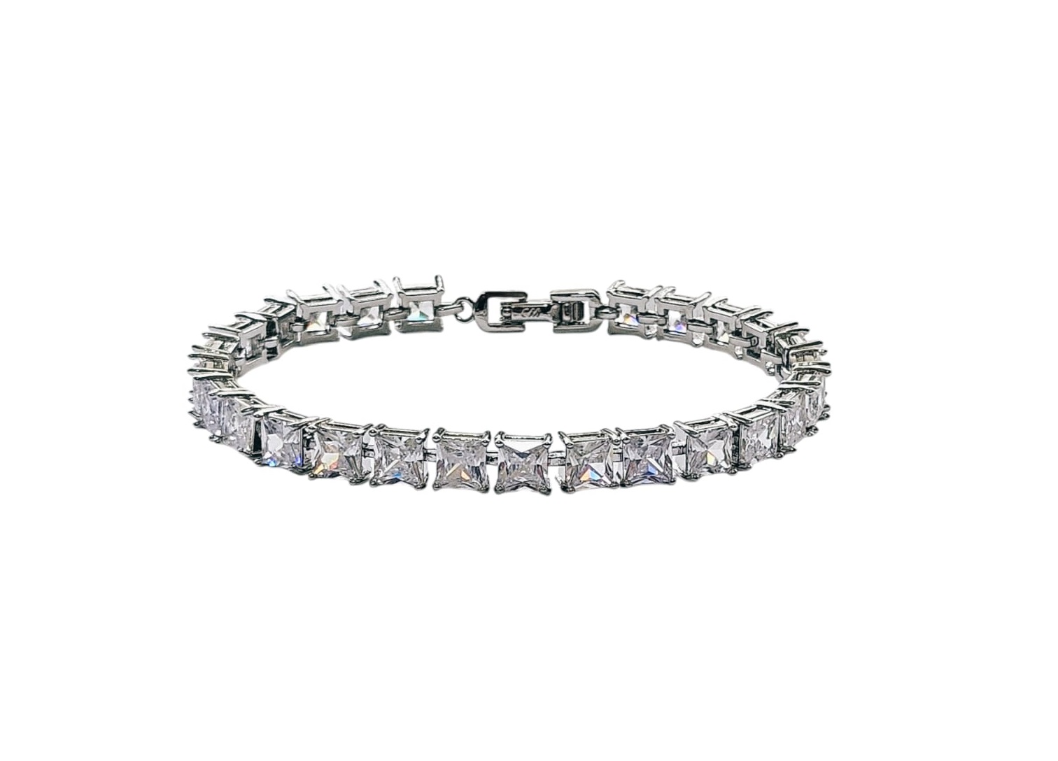 PULSEIRA RIVIERA ZIRCÔNIA QUADRADA CRISTAL BANHADA A RÓDIO BRANCO
