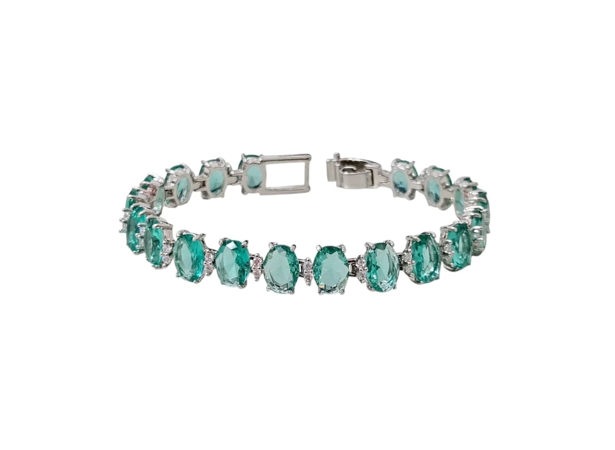 Pulseira Turmalina com Pontos de Zircônia Intercalados Banhado a Ródio Branco