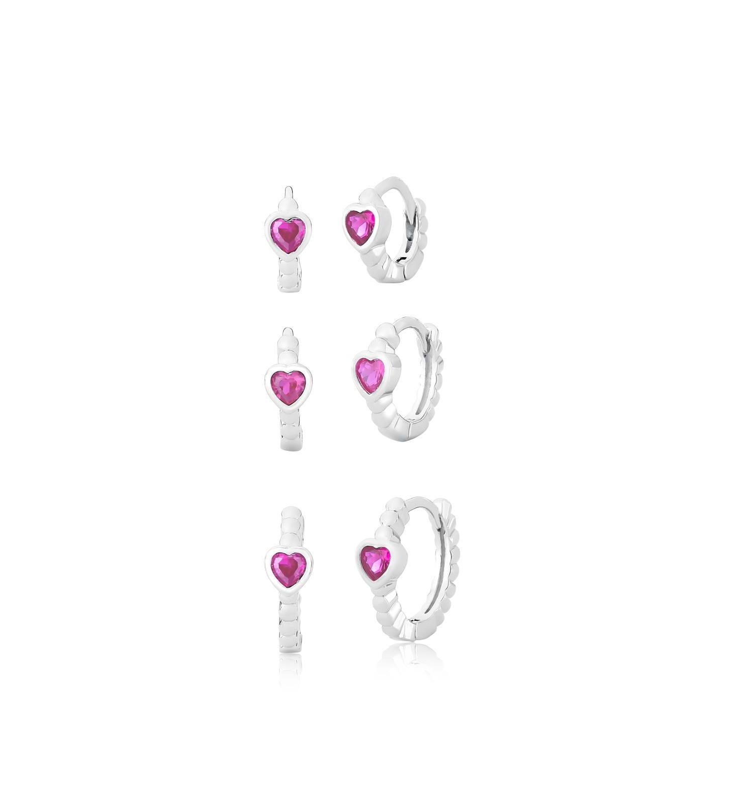 TRIO DE ARGOLAS COM CORAÇÃO RUBELITA BANHADO A RÓDIO
