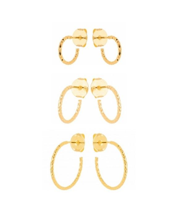 TRIO DE ARGOLAS TRABALHADAS LISAS BANHADO A OURO