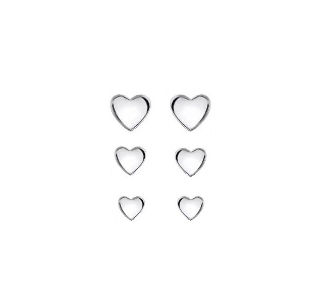 TRIO DE BRINCOS CORAÇÕES LISOS BANHADO A RÓDIO
