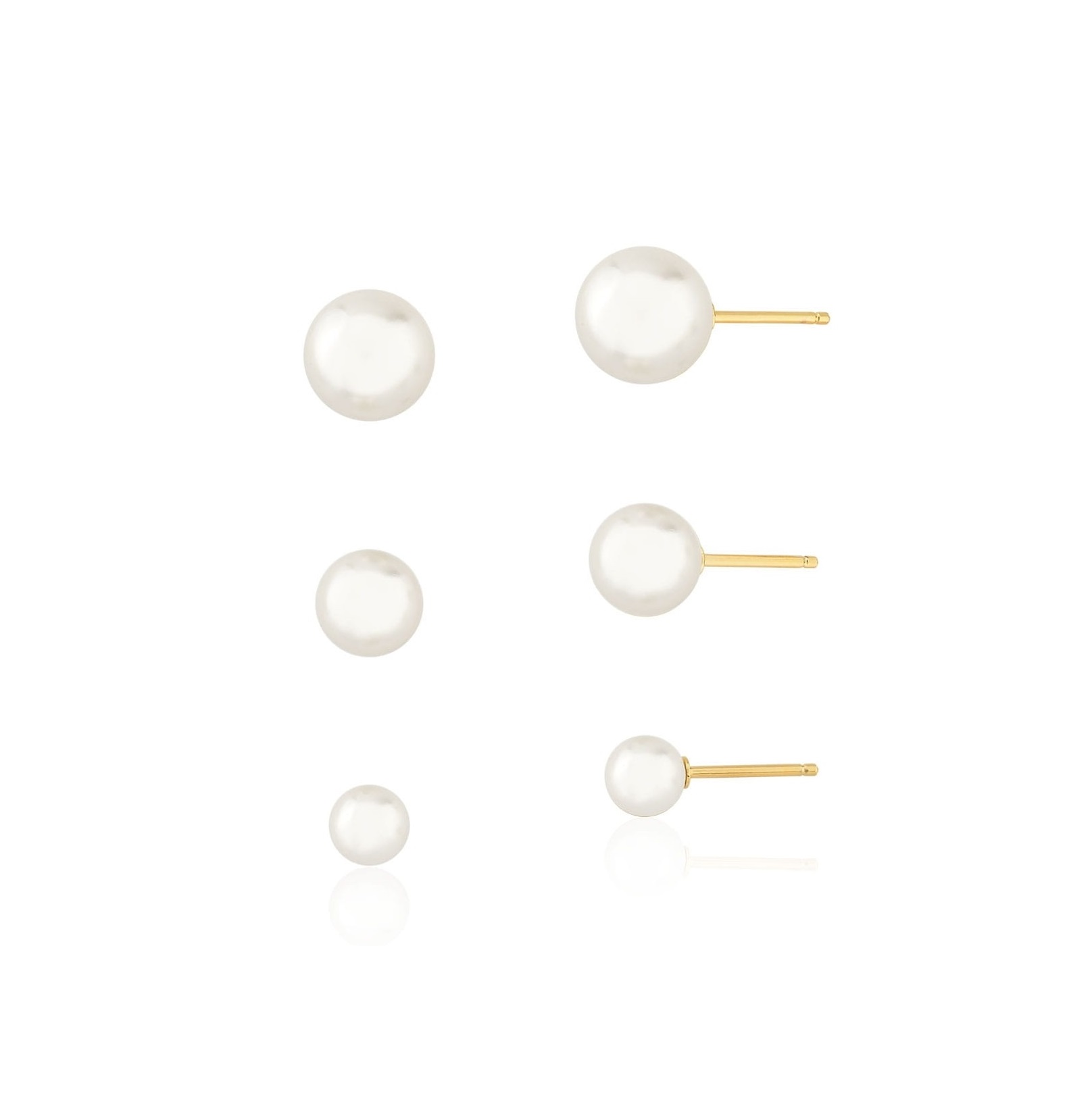 TRIO DE BRINCOS DE PÉROLAS BANHADO A OURO